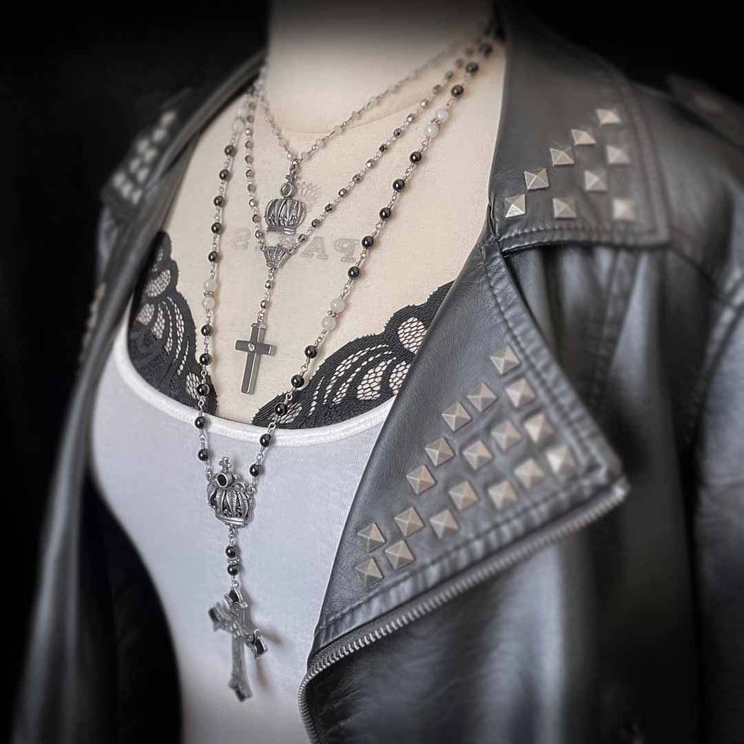 Each rosary is handcrafted, blending traditional design with a bold rock n' roll edge. Unique and daring, our rosary necklaces for men and women are perfect for those who stand out. Embrace your rebellious spirit with our distinctive Rosary Necklace Collection, where every piece combines the essence of beaded rosaries with the boldness of rocker jewelry.