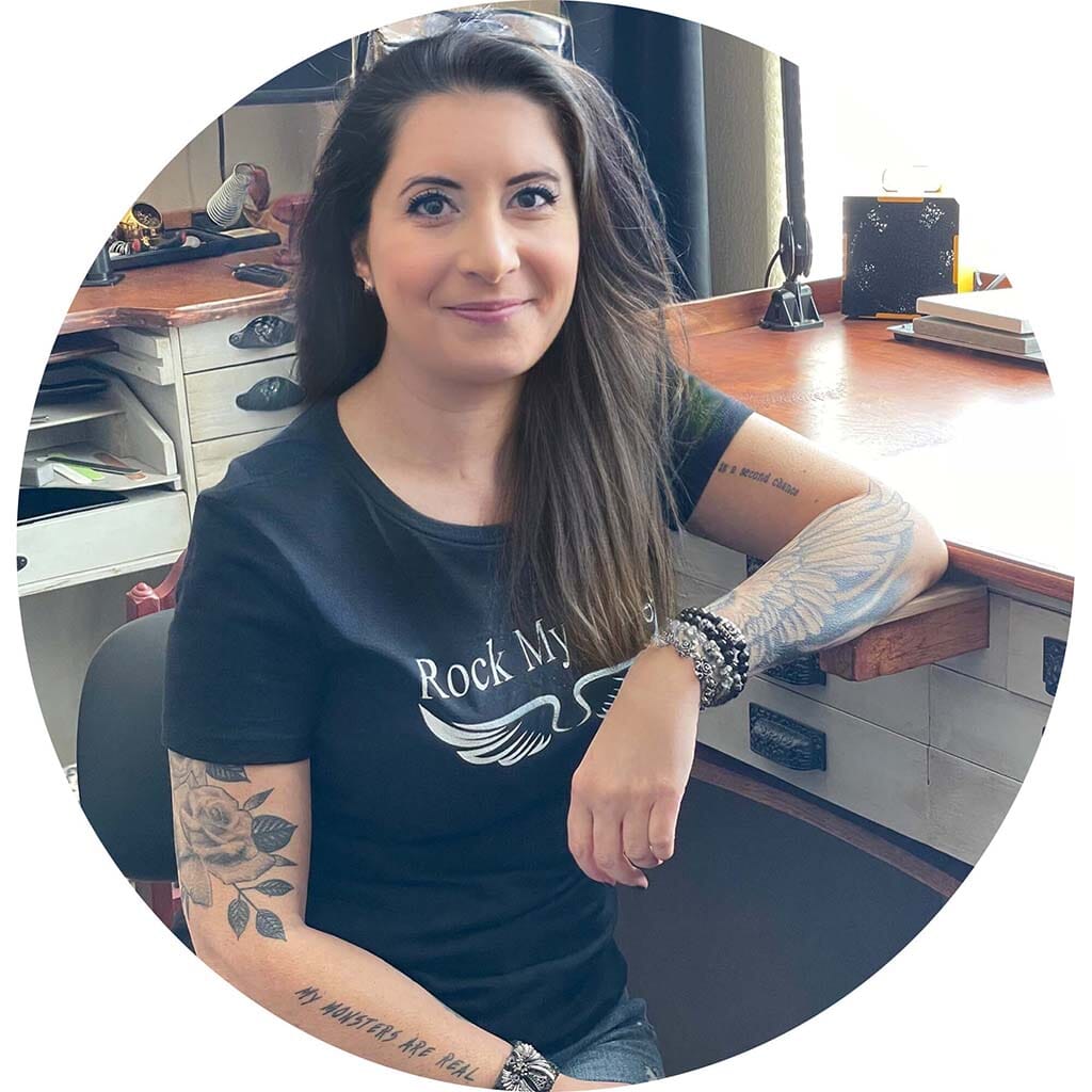 In 2016, everything in my life shifted when I was diagnosed with Hashimoto’s disease. It forced me to step away from my jewelry business and focus on my health, but it also pushed me to rethink who I was as a designer and as a person. I’ve always been a rocker at heart, jeans, a T-shirt, boots, and tattoos that each tell a part of my story. I’m rebellious, direct, and unapologetically myself. When I returned to the studio, I knew I couldn’t create anything that didn’t reflect that truth.